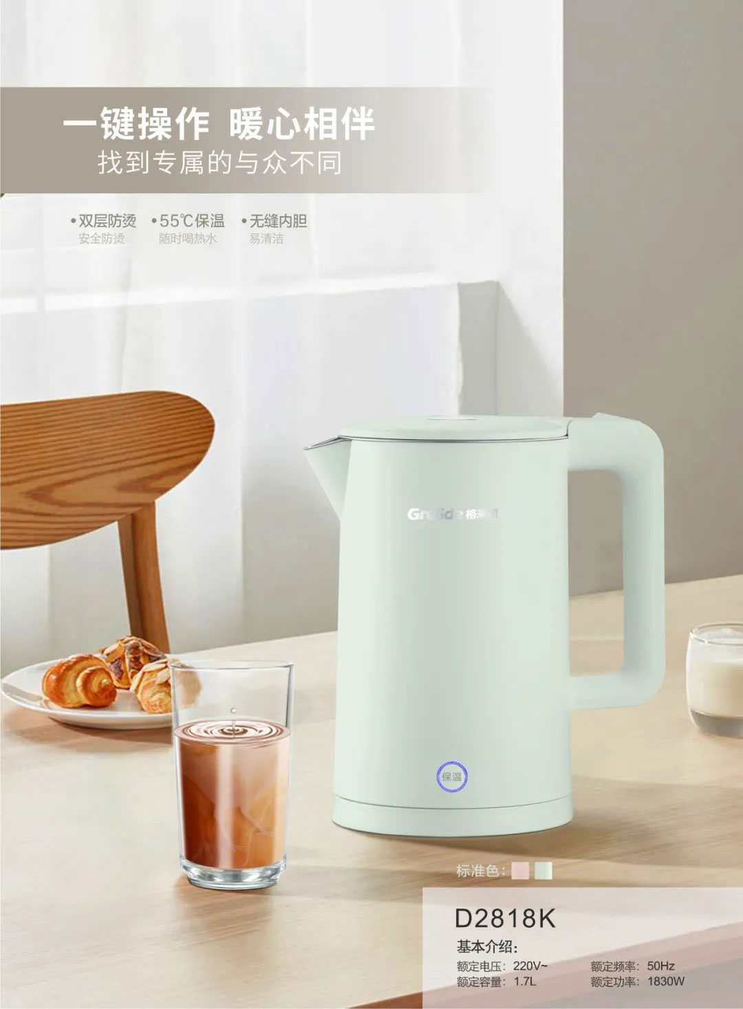 額定容量:1.7L 額定功率:1800W